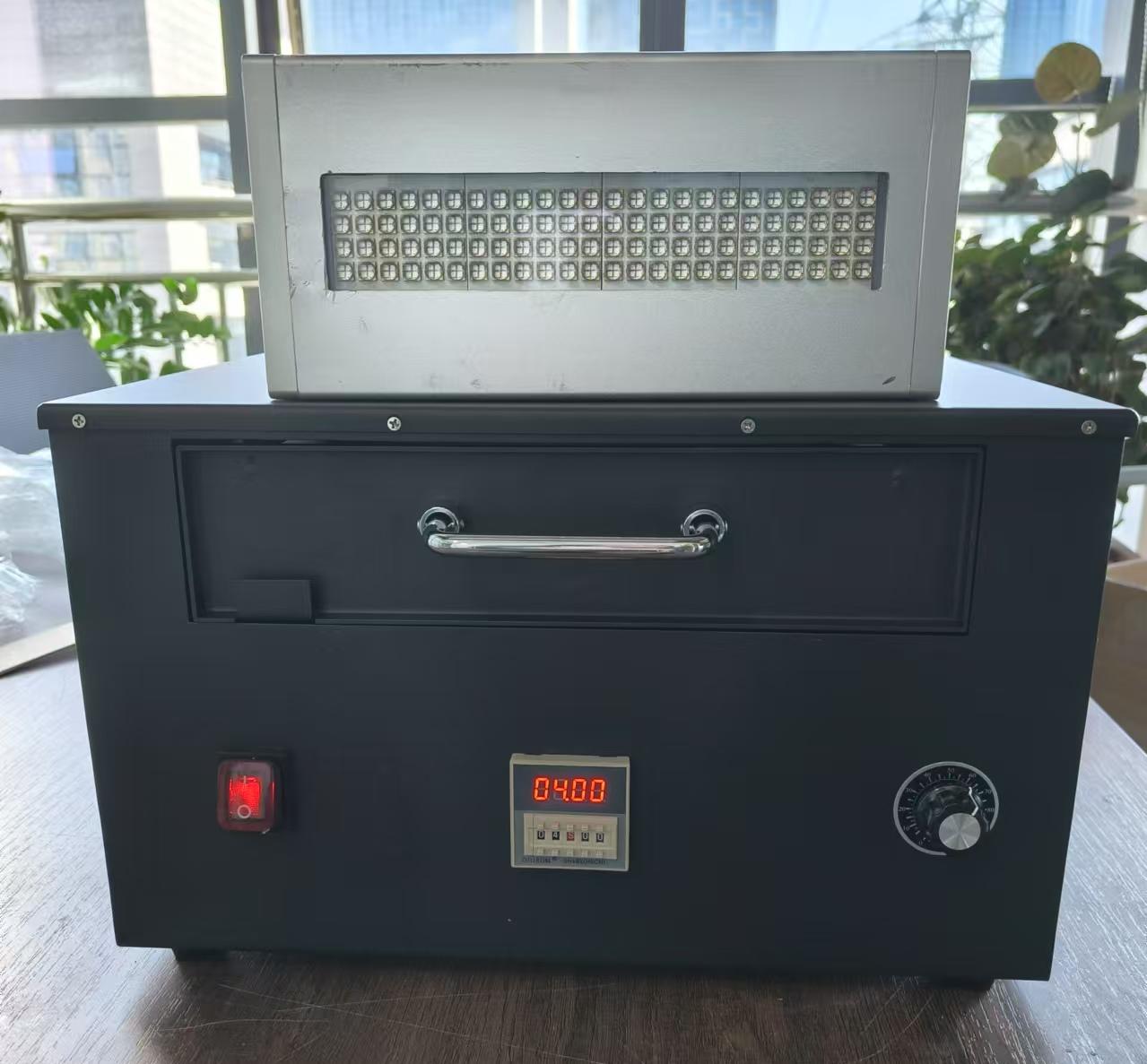 尊敬的客户,欢迎选购本公司自主研发生产的高效抽屉式LED UV固化箱。本产品采用高品质大功率LED紫外灯珠,发光强度高,